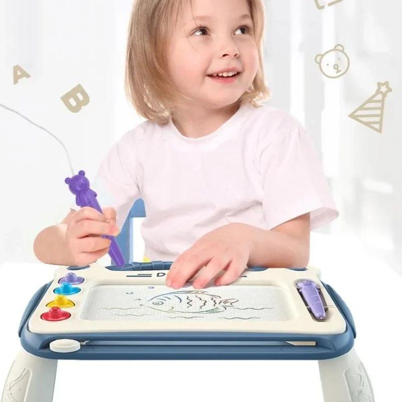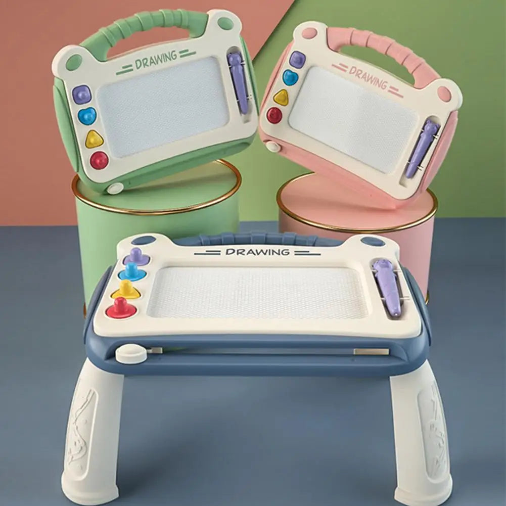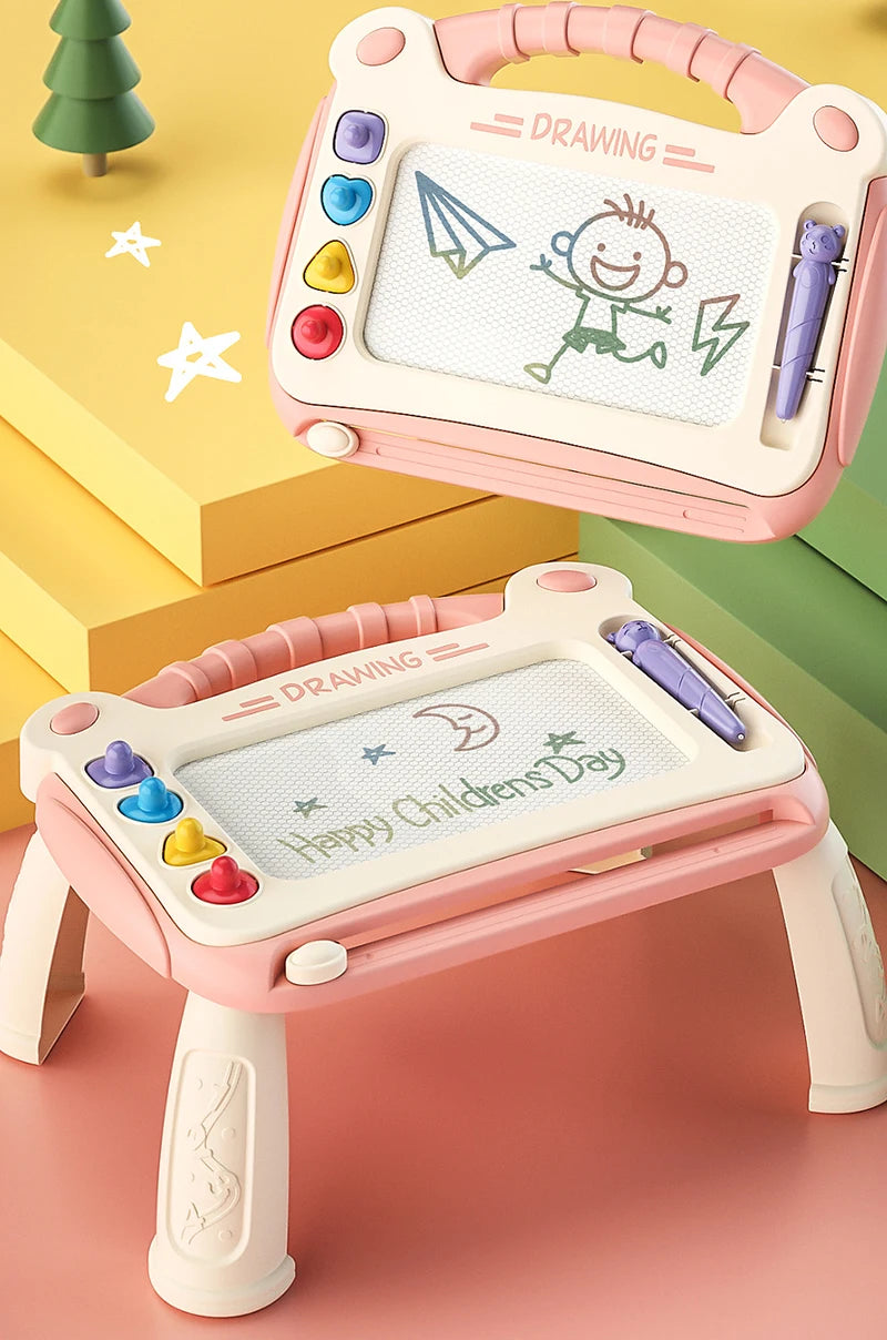 Grâce à notre tableau magnétique à graffitis, votre enfant pourra explorer le monde créatif de l'art et de l'imagination. Ce jouet innovant au design sophistiqué et à la valeur éducative offre des heures d'amusement aux enfants de tous âges. Avec ses pieds de table solides et sa structure durable, ce tableau est conçu spécialement pour éveiller l'imagination des enfants et pour développer leurs compétences artistiques.